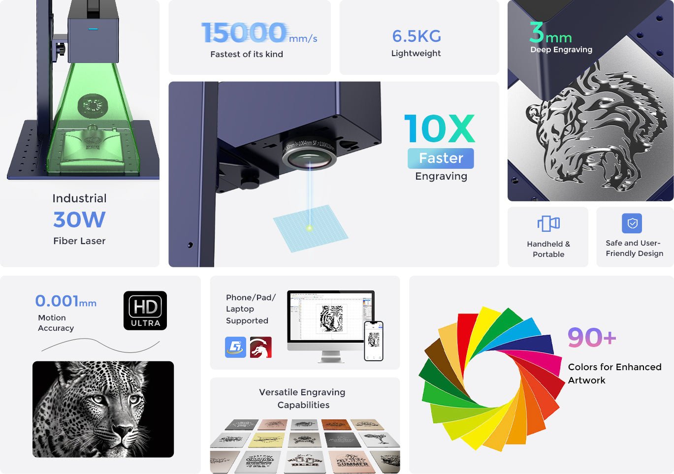 Featuring an industrial-grade, ultra-high precision galvo, the G2 offers 0.001mm high-precision engraving, bringing your creations to life.